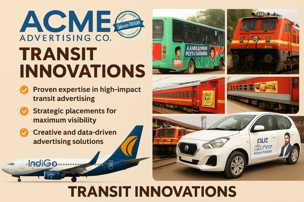 With over 16 years of experience And also We provide this service in bulk Acme Advertiser Co.  has played a pivotal role in transforming transit advertising. We work closely with brands to develop customized campaigns that align with their marketing goals and leverage the full potential of transit spaces.